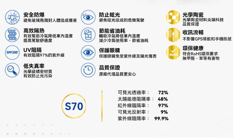 可見光透過率:70%