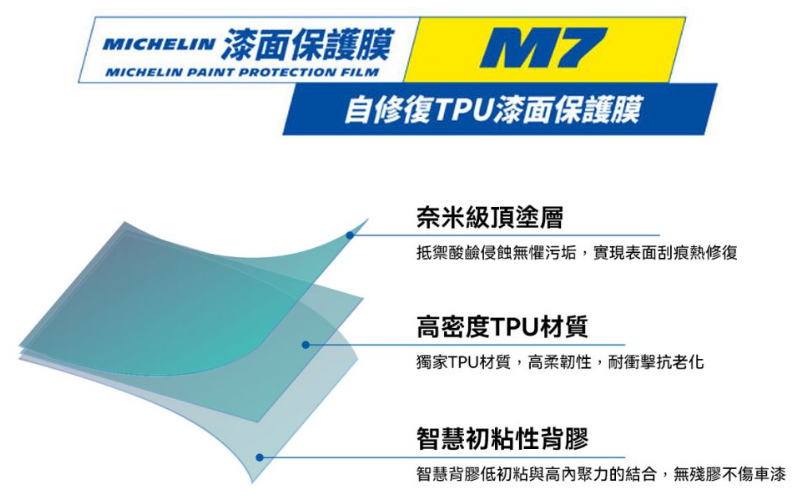 再生修復:圖層複合技術具有熱修復再生功能,在太陽光的照射下,透過TPU7mil厚度,全面預防意外擦損 持久光澤:細緻密度結構·大幅提升漆面光澤度與亮度·讓愛車歷久常新
