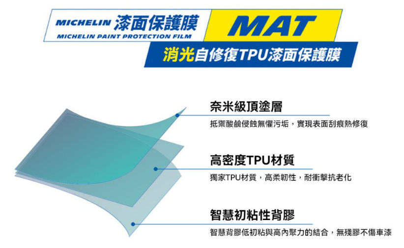 再生修復:圖層複合技術具有熱修復再生功能,在太陽光的照射下,透過TPU7.5mil厚度,全面預防意外擦損