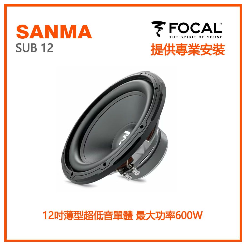 若想為車用音響系統增添震撼低音,SUB 12 是理想之選。配備 30 公分聚丙烯音膜與單音圈設計,兼具高效能、安裝簡單與易於使用,帶來沉浸式聆聽體驗。 強勁低音 採用聚丙烯圓錐單體,具備卓越剛性,可有效降低失真,確保低頻表現清晰、深沉且強勁。 完美搭配 SUB 12 是 Focal 車用音響系統的最佳補強,特別適合搭配 Access、Universal、Polyglass 或 Slatefiber 系列,發揮極致音效。 簡易連接 配備螺絲端子,讓連接音響系統更加簡便。可安裝於密封箱體(10L 起)或低音反射箱體(25L 起),適應不同需求。