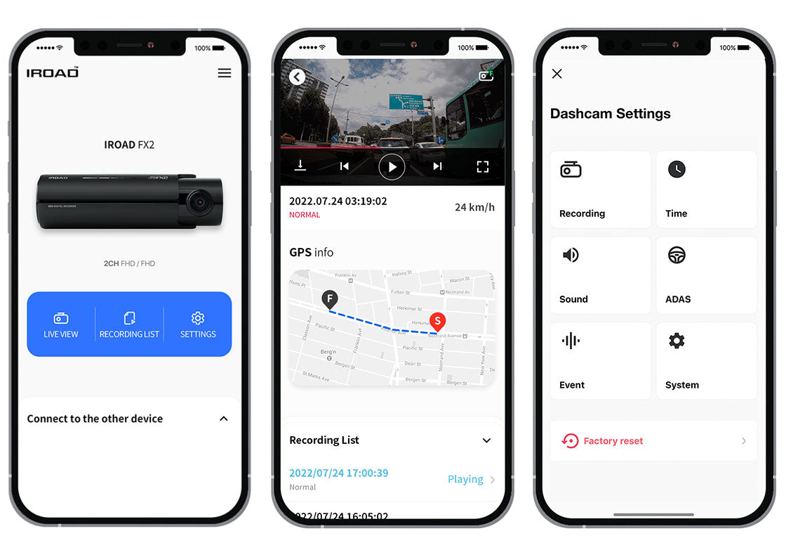 IROAD FX 系列中的 GPS 數據可以在地圖上精確定位車輛的位置和路線,同時還可以顯示行駛速度。這有助於在發生事故時更準確地評估情況。