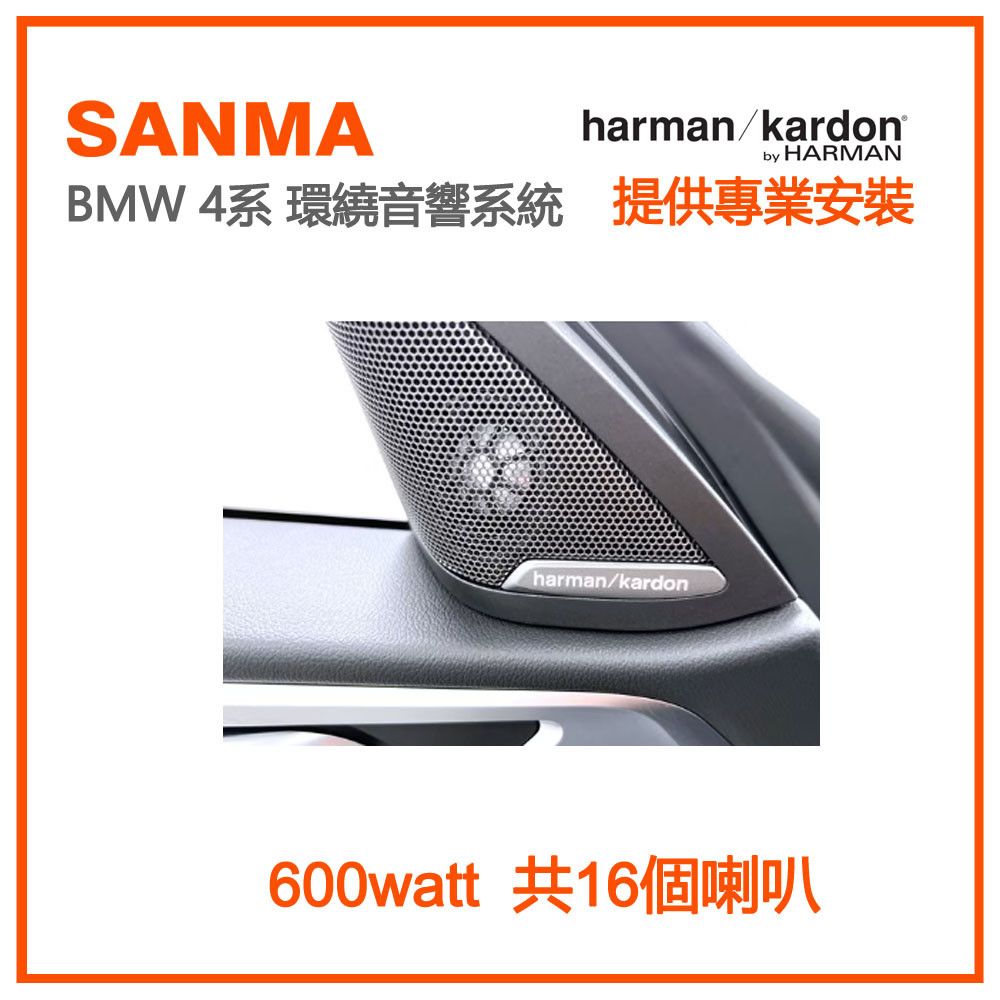 適用於BMW 4系列車款的Harman/Kardon音響系統,從柔和的人聲到富有動感、動人心弦的節拍,都能為您帶來最佳的演繹效果。
