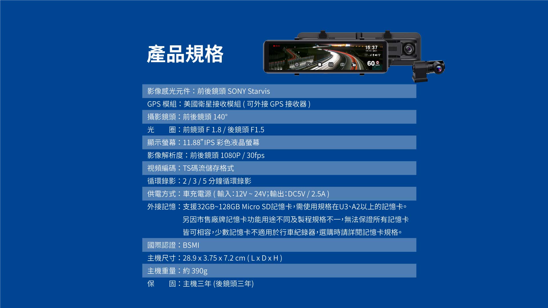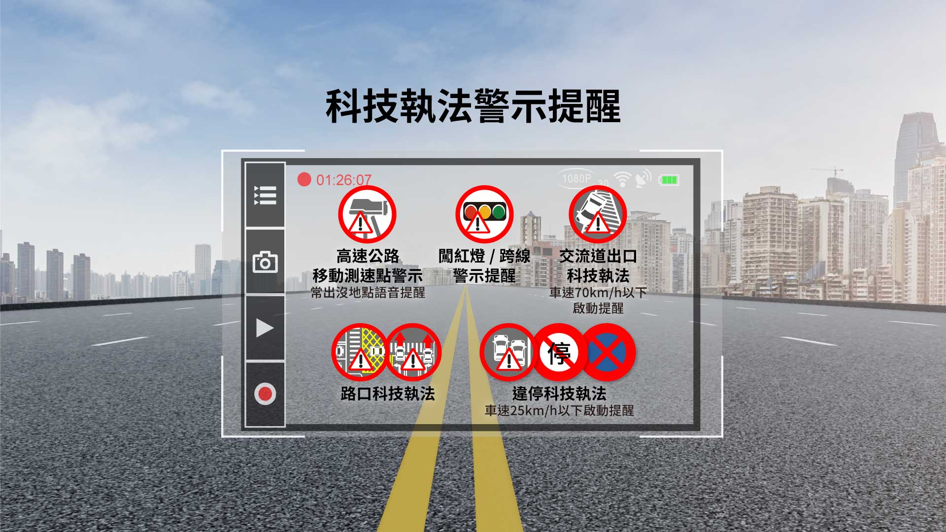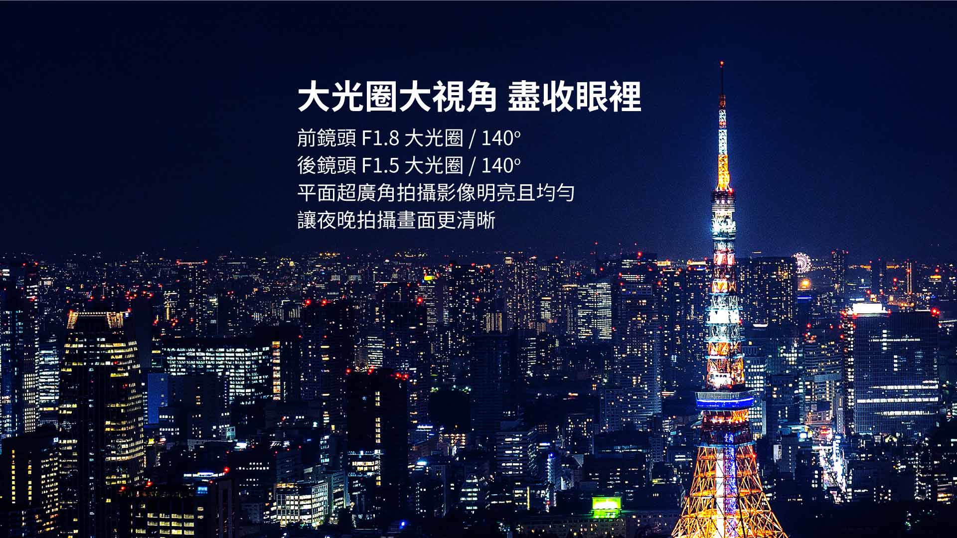 ●WiFi+APP無線傳輸●Sony星光夜視第二代,高階感光元件夜拍強化●1080P,錄影高畫質●大光圈,飽滿進光量影像銳利●大廣角,前後140°視野開闊●TS碼流錄影格式●GPS軌跡記錄●業界最齊全科技執法資料庫●每月更新最新圖資●固定測速點 / 高速公路移動測速點 警示提醒●科技執法 / 區間測速警示提醒●緊急錄影安全保障