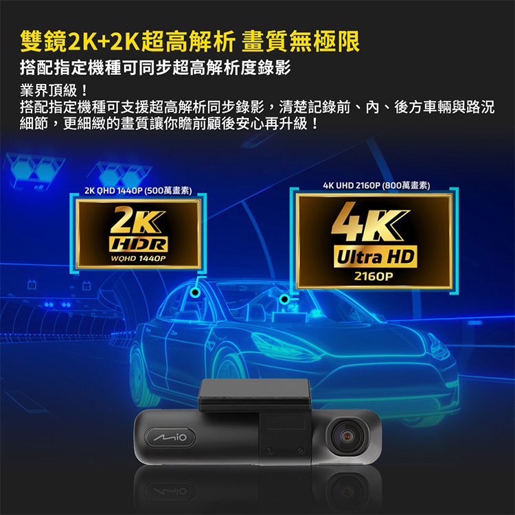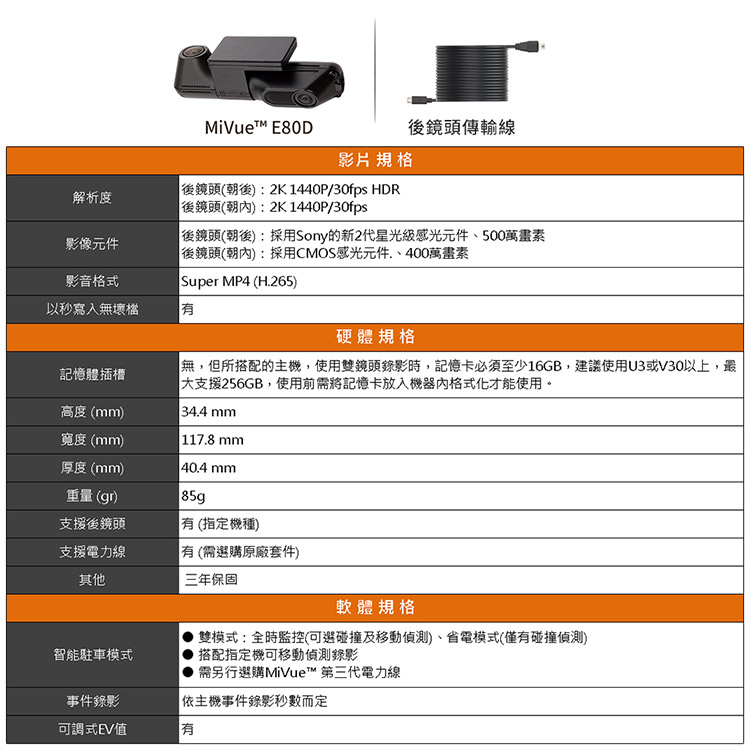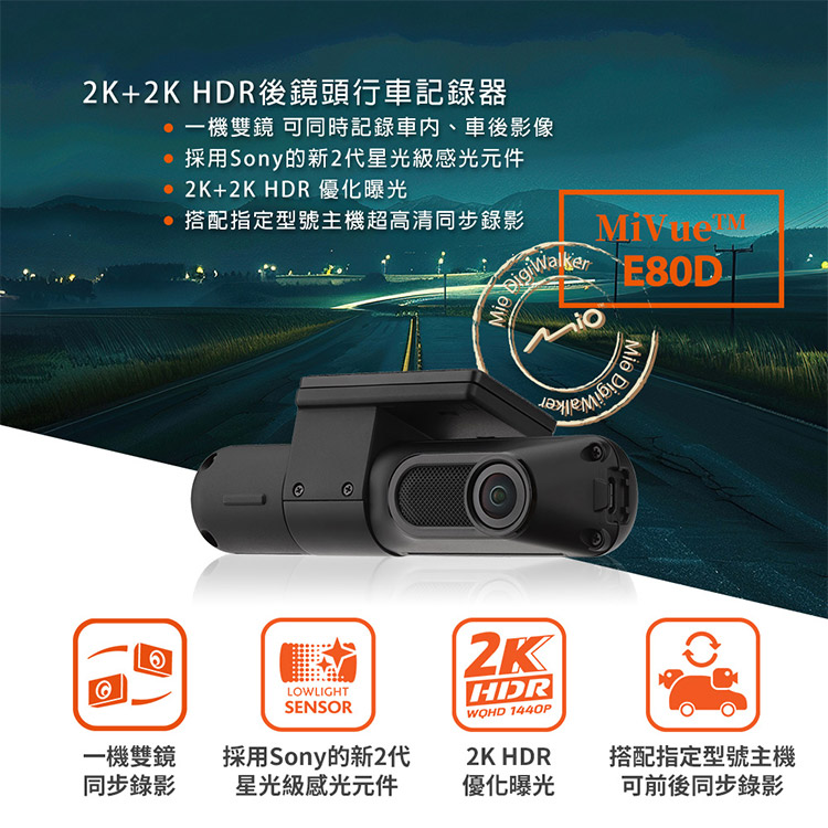 Mio MiVue E80D 2K+2K HDR後鏡頭行車記錄器
