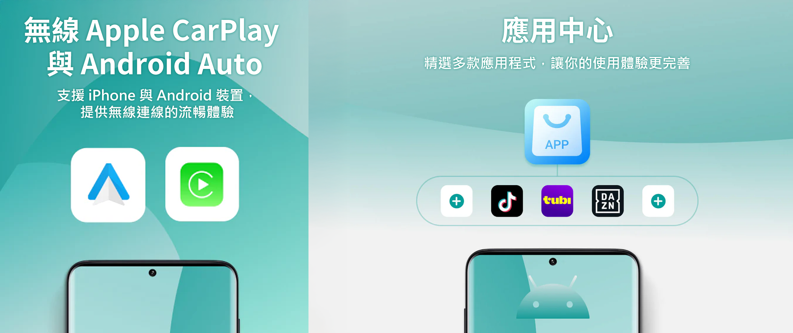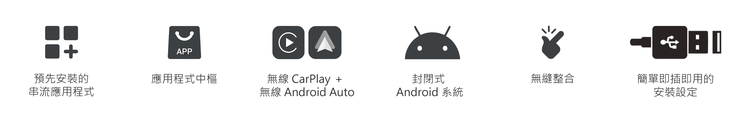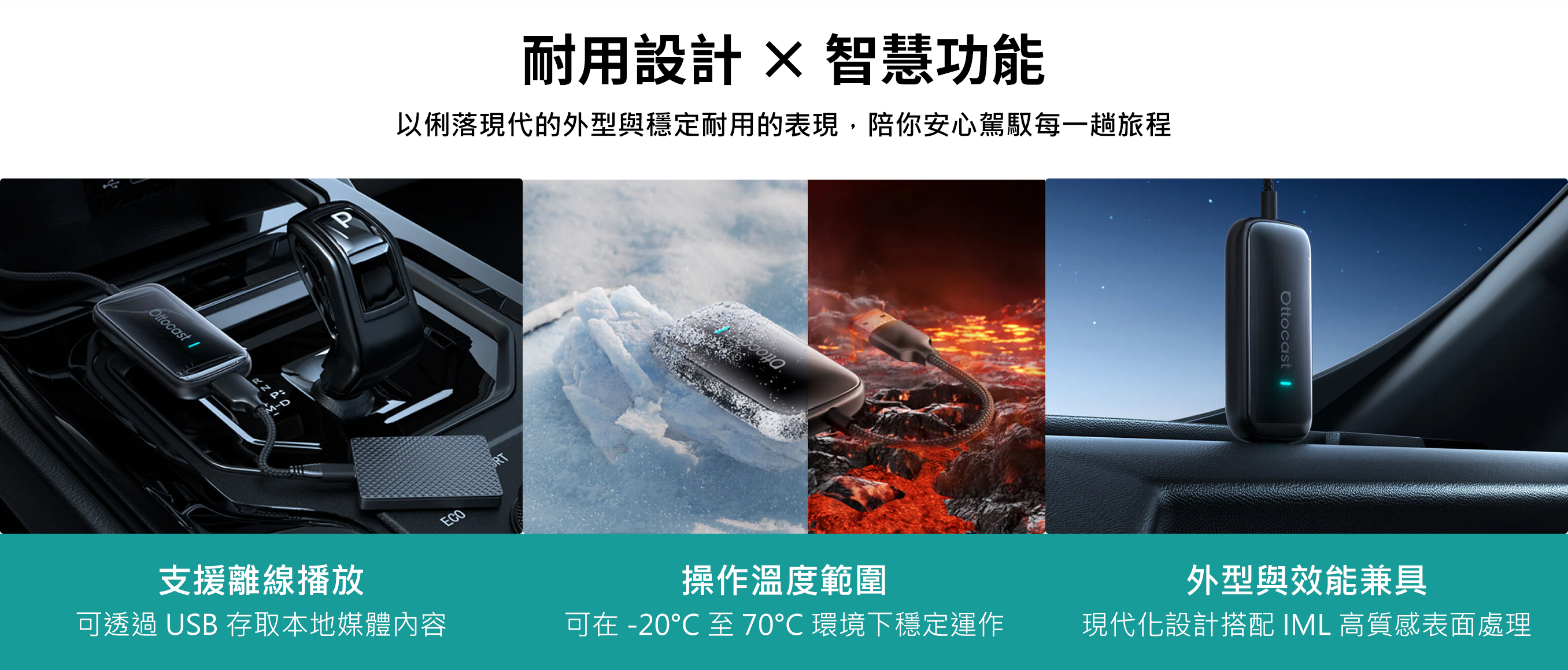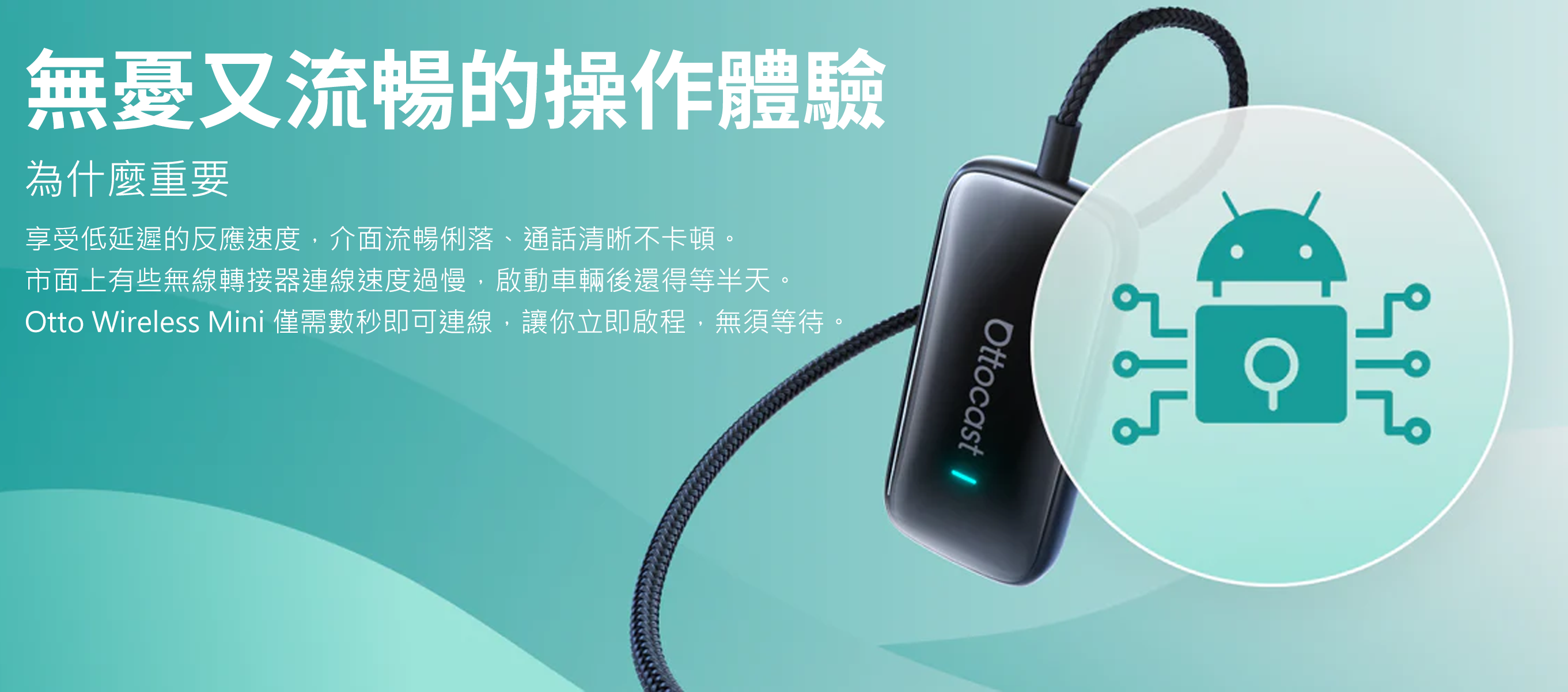 - 瞬間無線化 — 將有線 CarPlay / Android Auto 只需數秒,即可變成無線連線。(需原車支援有線 CarPlay 功能)