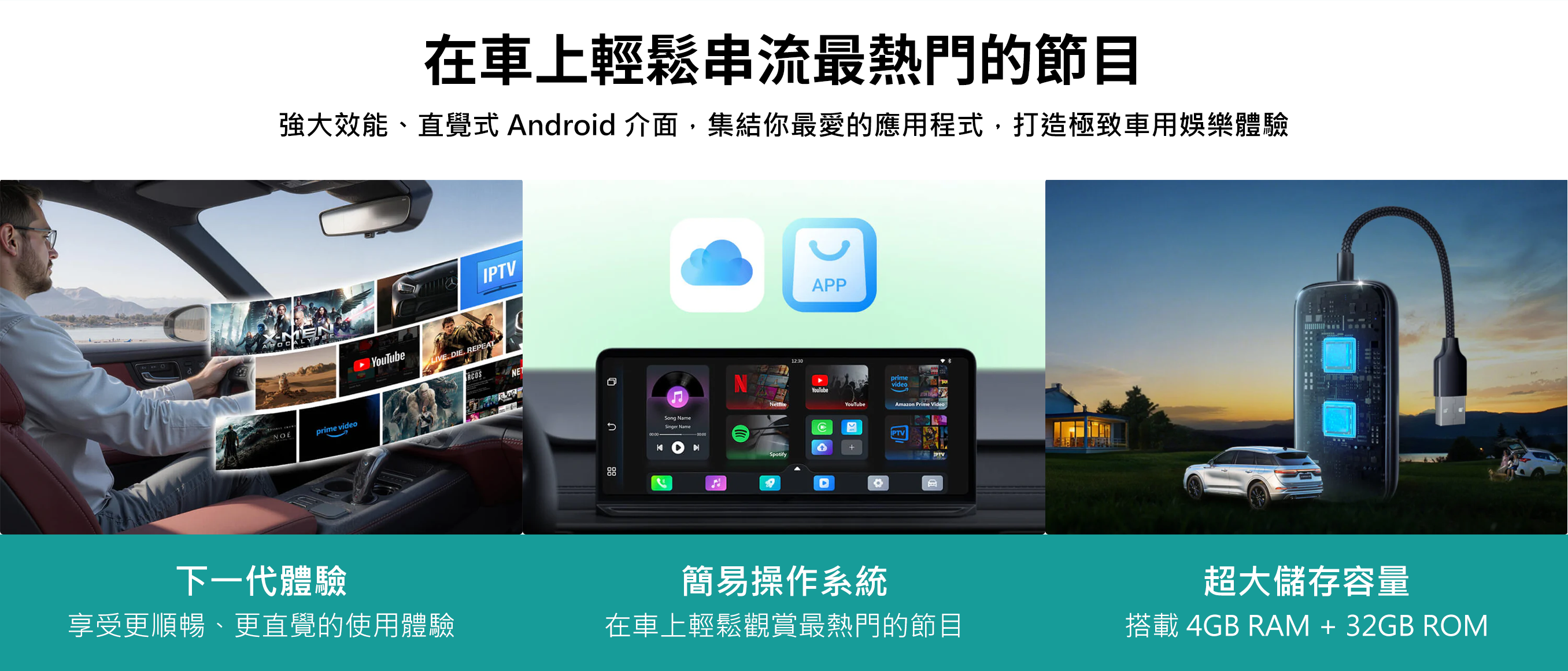 - 熱門 App 內建 — Netflix、YouTube、IPTV、Amazon Video、Spotify 直接預載,開箱即可使用