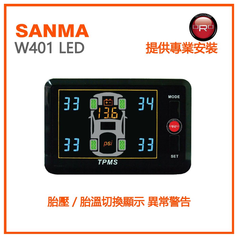 W401 無線胎壓監測系統,包含四個發射器模組與一個接收顯示器模組,利用安裝於輪胎內的發射器模組來偵測輪胎內的胎壓與溫度,並透過發射器模組上的發射電路以無線電訊號傳輸資訊予安裝於車內的接收顯示器模組,並將胎壓與胎溫資訊顯示於接收顯示器模組上,當有胎壓或胎溫異常狀況被檢出後,接收顯示器模組會由綠色燈號轉為紅色燈號並自動發出警告音,提供駕駛者及早針對輪胎的異常狀況做出對應,可減少因胎壓異常或胎溫異常所造成的駕駛意外發生。