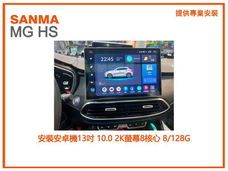 MG HS 安裝安卓機13吋 10.0 2K螢幕8核心 8/128G