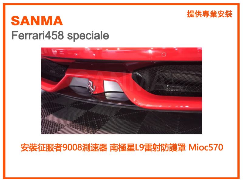 Ferrari458 speciale 安裝征服者9008測速器 南極星L9雷射防護罩 Mioc570